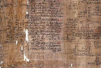 Imagen del Papiro de Ahmes o Papiro Rhind. La imagen es de dominio público y está extraida de wikipedia.