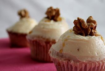 ¿Quieres conocer la receta? Vamos... Las cantidades están calculadas para unas 18 cupcakes. La receta de la masa de nueces os la copio, aunque ya apareció aquí, es la misma.