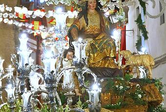 Risco de amores que se eleva sobre La Vega, bendito trono, donde el corcho, por la gracia del sentimiento, se hace roca, baluarte de fe y devociones, donde pacen las ovejas del rebaño de tus desvelos, ¡Pastora Divina!, pidiéndote que oigas el clamor de sus balidos, plegarias y alabanzas que llenan los días de novena.