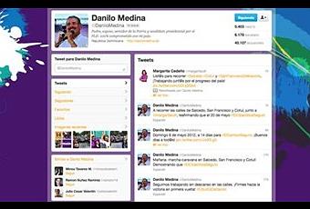 A días para las elecciones presidenciales dominicanas, ya en la recta final de la contienda electoral, los candidatos resaltaban vía Twitter los puntos más importantes de sus propuestas de gobierno, buscando estrechar más los lazos con las masas y convencer a los que aún no definen por quién será su voto. Hipólito Mejía encabeza la lista con el mayor número de seguidores. Su cuenta oficial @llegopapa registra 55,996 personas conectadas al candidato del Partido Revolucionario Dominicano desde que el 10 de agosto de 2009 ha escrito 1,335 tuits. Danilo Medina se define en su biografía como padre, esposo, servidor de la Patria y candidato presidencial por el Partido de la Liberación Dominicana (PLD), 100% comprometido con su país. Desde el 26 de abril de 2009 cuando da apertura a su cuenta @DaniloMedina ha recibido el apoyo de 38,095 personas, gracias a un total de 5,224 tuits escritos.