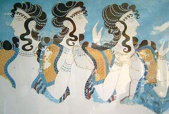 Frescos en Cnosos, Creta"Y tras dejar el pesado cetro, el padre y soberano de los dioses, cuya diestra está armada de fuegos de tres puntas, quien con su movimiento de cabeza agita el orbe, se viste con la apariencia de un toro y, mezclado con los novillos, muge y pasea su hermosura entre las tiernas hierbas. En efecto, su color es de la nieve que no han pisado las huellas ni ha derretido el lluvioso Austro; su cuello rebosa de músculos, sobre los brazuelos le cuelga la papada, los cuernos son pequeños ciertamente pero de los que podrías afirmar que habían sido hechos a mano y más resplandecientes que una piedra preciosa sin mancha; ninguna amenaza en su frente y ninguna mirada que aterre: su rostro respira paz. Se admira la hija de Agénor de que sea tan hermoso, de que no amenace ningún combate, pero en principio teme tocarlo aunque sea manso: luego se acerca y tiende flores a su blanco hocico. El enamorado se alegra y, mientras llega el esperado placer, besa sus manos; y apenas ya, apenas, aplaza el resto y ora juguetea y salta en la verde hierba, ora apoya no níveo costado en las rubias arenas y, haciéndole perder el miedo poco a poco, unas veces ofrece su pecho para ser palmeado por la virginal mano, otras los cuernos para ser atados con nuevas guirnaldas. Se atrevió incluso la doncella real, sin saber a quién pesaba, a sentarse en el lomo del toro: en ese momento el dios, poco a poco desde la tierra y desde la playa seca, pone en primer lugar las falsas huellas de sus patas en las aguas, después se va más allá y lleva su botín a través de la llanura de alta mar. Ella está aterrada y se vuelve a mirar la playa abandonada en su rapto y sujeta con su mano derecha un cuerno, la otra está colocada en el lomo; sus ligeros vestidos ondean con el soplo del viento." (Ovidio: "Metamorfosis". Cátedra, Madrid, 2005).