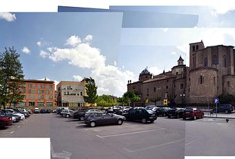 La diferencia de altura respecto del alzado original explica el rasgo más emocionante de todo el proyecto. Cuando el otro día lo visité un pastel de salmón, medio bogavante al romero, una tabla de quesos y tres cuartos de litro de albariño más tarde de una buena comida servida por un vejete simpático que sólo hablaba francés, con ánimo de hacer las fotos que ilustran este reportaje, me di cuenta que no estaba fotografiando la fachada delantera sino la posterior. Una aclaración sobre el emplazamiento: Solsona, ciudad pequeñita que todavía conserva algunos lienzos de su muralla, tiene una ronda perimetral bastante paseable que delimita con precisión el perímetro intramuros de la ciudad. El cuadrante sureste de la muralla delimita la catedral, que está adosada a ella. En frente está el edificio reseñado. Quedan enfrentados el ábside y la fachada posterior.