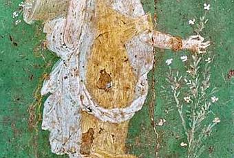 Anónimo: fresco de la diosa Flora paseando con el cuerno de la abundancia, siglo I. Stabia, Museo de Nápoles.