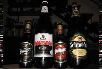 Quilmes Stout, Isenbeck Dark, Quilmes Bock y Schneider Stout.La Brahma Morena no se consigue fácilmente en Buenos Aires (si es que todavía la elaboran), menos la Salta Negra, Norte Negra y Andes Porter. No existe mas la Bieckert Africana, y la Schneider Negra mutó en la nueva "stout". Así que solo contábamos con 4 cervezas negras industriales argentinas que se puedan conseguir fácilmente en casi cualquier negocio (esa era nuestra consigna).