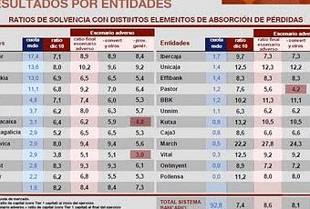 Del total de los bancos examinados, ocho no han llegado al aprobado. Y miren ustedes por donde, de las veintisiete instituciones españolas presentadas, han suspendido la prueba cinco. Cuatro cajas de ahorro (CAM, CatalunyaCaixa, Unnim y Caja3) y el banco Pastor.