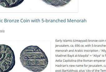 Una moneda musulmana, omeya mas concretamente, acuñada en Jerusalem en 696 muestra la conexión del pueblo judío con el Monte del Templo.