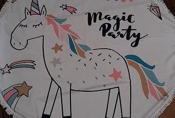 Como dice el título de la entrada, seguimos con unicornios... en esta ocasión en una toalla redonda de las que están tan de moda...