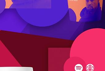 En 'Starbucks X Spotify', el diseñador reúne a 5 artistas mediante coloridos diseños sobre los vasos de café. Cada uno lleva la cara del cantante, acompañada de un fragmento de una de sus letras más conocidas, y los logotipos de ambas marcas. Así, la serie la componen Justin Bieber, Ariana Grande, Kanye West, Adele y Drake.