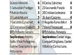 FormacionesCOLÓN: Pozo; Caire, Alcoba, Raldes y Urribarri; Mugni, Bastía, Prédiger y Moreno y Fabbianessi; Curuchet y Gigliotti. Luego Ramírez, Gomez y Bernardello. DT: Roberto Sensini.RIVER PLATE: Barovero ; Mercado , Pezzella , Maidana y Ramiro Funes Mori ; Sánchez , Ponzio , Ledesma y Cazares ; Rogelio Funes Mori y Trezeguet . Posteriormente Rojas , Aguirre y Mora. DT: Matías Almeyda.GOLES: Rubén Ramirez (COL) 24 st. Germán Pezzella (RP) 42 st.ARBITRO: Néstor Pitana (bien)FIGURA:Maximiliano Caire (Colón)RESULTADO MORAL: Colón 1 - River Plate 1.
