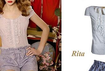 Ideal combinación en diferentes tejidos. Pantalón short de tweed, fruncido en la cintura y lazo. Camisa de pequeños lunares muy favorecedora.Rita: 78,90€Lulú: 74,90€