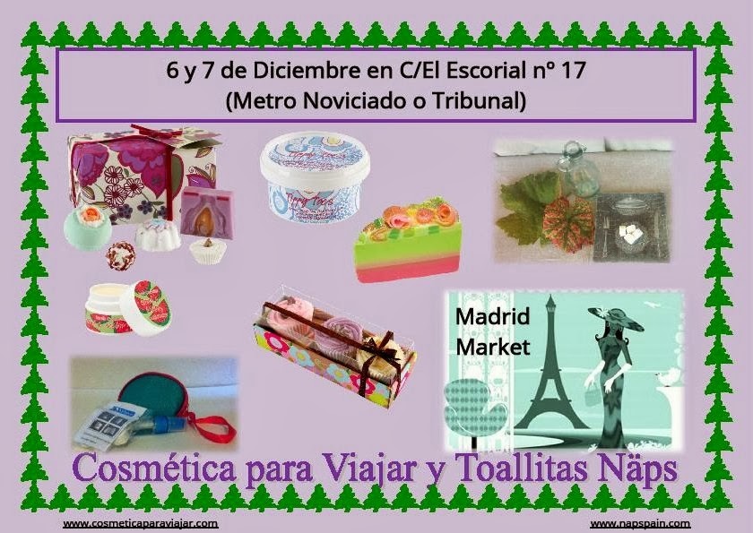 Recordáis que hace unas semanas os conté que me había lanzado al mundo empresarial con mi pequeño negocio Cosmética para Viajar y de cara a estas fechas nos hemos decidido a participar en algunos mercadillos navideños junto con Teresa de Napspain.El primero de ellos será este fin de semana el viernes 6 y el sábado 7 de Diciembre y se trata de Madrid Market, en pleno centro de Madrid en la Calle Escorial 17 de 12:00 a 21:00.Nosotros para este mercadillo hemos decidido apostar por la cosmética natural y tras una dura búsqueda traemos a España una marca líder en Inglaterra Bomb Cosmetics, con unas cajas de regalo que no dejarán a nadie indiferente.