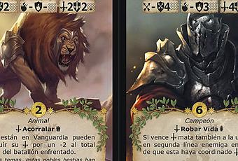 25 cartas por facción, 50 en total, con 10 cartas de acción, 14 cartas de tropas (incluyendo 1 nuevo Campeón y 1 Objeto mágico) y 1 nueva habilidad exclusiva para cada facción, es lo que llevará cada pack de expansión.
