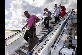 Los ligamayoristas cubanos José Dariel Abreu, Brayan Peña, Yasiel Puig y Alexei Ramírez arribaron, este martes, a Cuba como parte de la delegación de la Major League Baseball (MLB) y su Asociación de Jugadores de Major League Baseball (MLBPA), que estarán en la Isla, durante tres días, en una gira de buena voluntad, con el objetivo de establecer principios de acuerdos concretos e intentar normalizar relaciones.