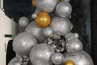 Para la instalación de este árbol han sido necesarias 6 bolas de 10 cm de diámetro, 14 x 20cm, 14 x 30cm, 12 x 14cm, 8 x 60cm, 8 x 80 cm y de 3 metros de diámetro.