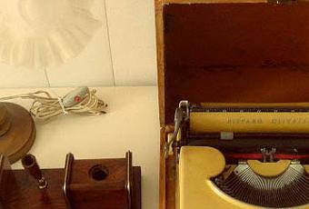 La maleta de la maquina de escribir estaba forrada con su tela original pero en muy mal estado, sucia y desgarrada, Oscar decidió quitar toda esa tela y dejar el precioso armazón de madera, lo trató, lijó y le dió goma laca.