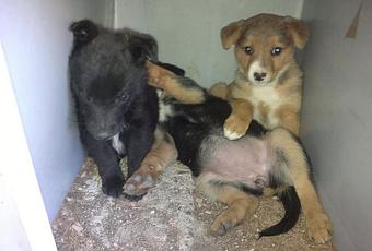 estos son los cachorros, habían 5 y se cargaron 2, quedan 3, son 2 hembras y 1 mancho (que es negro).
