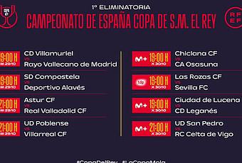 La Real Federación Española de Fútbol ha publicado los horarios correspondientes a la primera eliminatoria de la Copa del Rey, en la que el Sevilla visitará a Las Rozas CF, buscando el pase a la siguiente ronda en una eliminatoria que será a partido único.