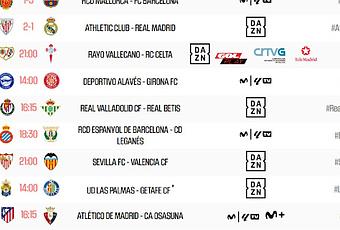 Este encuentro será emitido por DAZN, la jornada la abrieron el Mallorca- Barcelona el pasado martes 3 de diciembre y la cerrarán la Real Sociedad y el Villarreal el lunes 13 a las 21:00 horas.