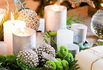 -Da la bienvenida con un vistoso centro de ramas de magnolio o de abeto y luces cálidas