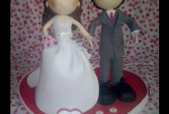 Así de guapo iban estos dos novios. He tratado de que sean lo más fieles posibles a la realidad. El traje de la novia era igual, las flores las mismas, el traje del novio igualito, la corbata del mismo color...