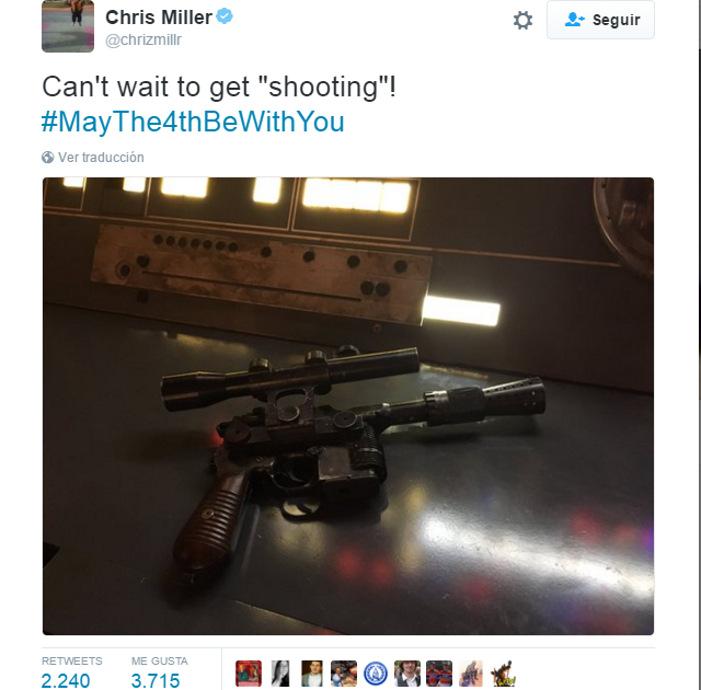 Imaginamos que si ha superado un casting tan brutal debe ser porque los directores le han visto potencial. Ahora puede ser difícil ver a otro en el personaje que hizo famoso Harrison Ford pero debemos tener confianza en Lord y Miller. Por cierto, éste publicó el siguiente tweet durante el pasado día de 'Star Wars':