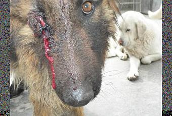 El pasado sábado de camino a recoger unos perros en un pueblo de Córdoba y vimos un perro en la carretera, en principio pensamos que estaba muerto pero vimos que se movía e inmediatamente paramos el coche y volvimos a recogerlo. No estábamos preparados para lo que nos encontramos.... era una pastora alemana en los mismísimos huesos, llena de heridas, con un ojo reventado y haciendo un gran esfuerzo para levantarse. La llevamos al hospital veterinario donde la atendieron de urgencias. Nosotros pensábamos que la habían atropellado, pero luego en la clínica nos dijeron que las lesiones que tenía la perra no concordaban con un atropello, más bien con una paliza. Nos quedamos de piedra, Yaiza había sido atacada por otro u otros perros y además le habían dado una brutal paliza y después la habían dejado tirada en una cuneta. Fruto de ello es una grave fractura craneal que hay que operar, quitarle el ojo y posiblemente tenga más lesiones, porque después de un buen rato la pobre ya no resistía el dolor y fue imposible hacerle radiografías de las patas traseras, en las que se aprecia por encima lesiones, pero tienen que concretar porque también tenía mucha inflamación. Mañana lunes le harán nuevas pruebas, ahora ha estado estos dos días descansando, comiendo y recuperándose, cogiendo fuerzas para la operación que tienen que hacerle.
