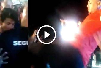 Con una patada aparentemente por la cara le respondió Yakarta a un fanático que lo tocó.