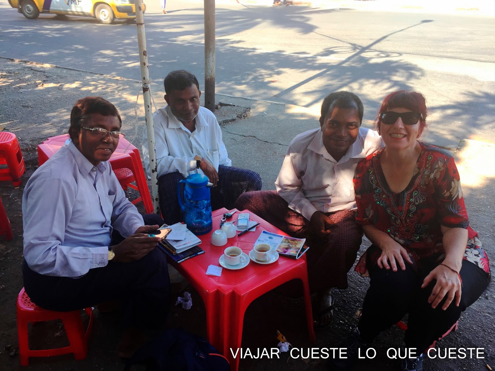 Con los amigos taxistas pactando precios y tomando su té birmano