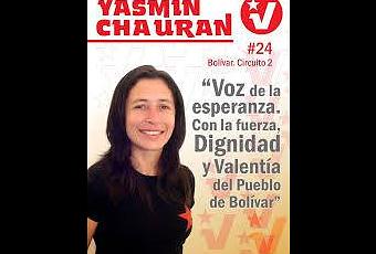 Yasmín Chauran, ingeniera metalúrgica trabajadora de CVG Venalum, a finales del año 2002 y comienzos de 2003, siendo estudiante de la Unexpo, presidenta del centro de estudiantes de dicha universidad por aquellos tiempos, integrante del movimiento “Utopía”, del Movimiento “Zurco”, ha dado una contribución muy importante dentro del Plan Guayana Socialista. Los que la conocemos, sabemos que Yasmín es una irreverente en la discusión, pero leal y radical en las acciones. Su formación revolucionaria, su conciencia de clase de la mano del obrero y el explotado es un compromiso de vida y de militancia que está más que constatado y probado, su valentía de decir las cosas sin pepitas en la lengua, aún a costa de su vida si fuere necesario, su amor al deporte, su participación en la milicia nacional bolivariana, son algunas de sus cartas de presentación que ya el pueblo conoce y aprecia de manera importante.