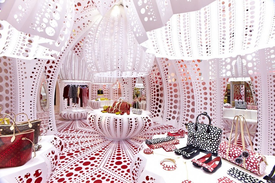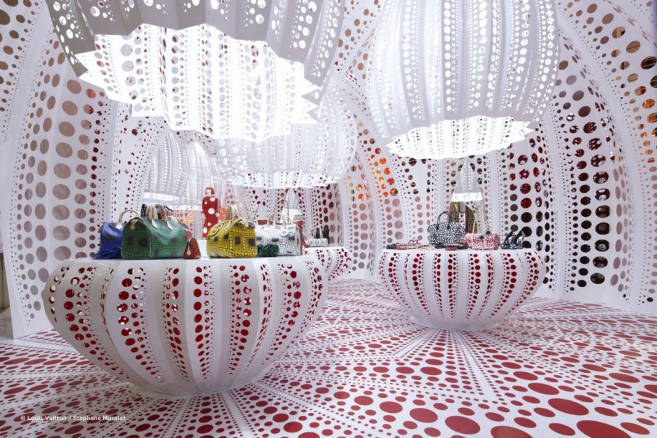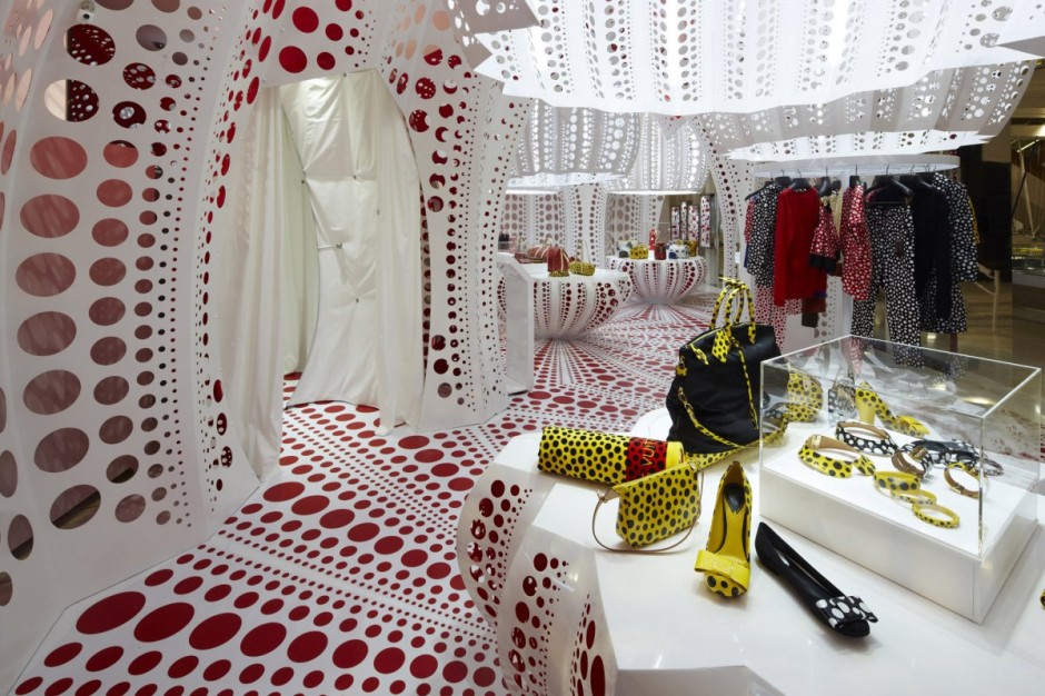 Entre lunares va el asunto, y así se ha reproducido tanto en la línea de marroquinería como en los expositores del producto. Una manera muy original para lanzar una nueva linea de producto.