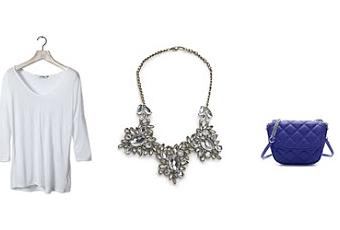 I teach a look maxi composed of Pull & Bear skirt with white t-shirt and bag and wedges in electric blue with silver and rhinestone necklace.