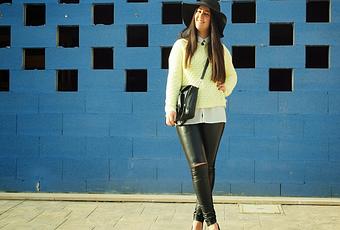 Hello! Happy Valentine's day to everybody! Today I show you a look with a spring touch. I bought this yellow jumper in my Barcelona travel and I want to use for first time as soon as possible. I combined it with my leather pants and my hat to give a feminine touch. Do you like it?