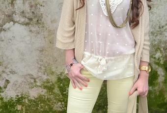 Y para la vuelta os traigo un look que tenía guardado de cuando el sol todavía no se dejaba ver mucho por aquí, este año se ha hecho de rogar pero ha llegado con más fuerza que nunca porque estamos teniendo unos días increíbles de sol y calor. Es un look en tonos suaves, un pantalón amarillo, uno de los colores de esta primavera/verano 2013, pero en una tonalidad muy clara, es del año pasado pero casi le estoy dando más uso este, conbinado con una blusa de estilo romántico y una chaqueta de punto un tanto diferente por la forma que tiene. Lo más llamativo del look sin duda, el bolso de estampado étnico, una mis pocas compras rebajiles, que casi podría decirse que es un saco por el tamaño que tiene, me encantan los bolsos grandes sobre todo para diario o para ir a trabajar, así puedo meter en ellos todo lo que necesito. Las fotos vuelven a ser en mi pueblín, Candás, últimamente lo tenía un poco olvidado y espero poco a poco ir enseñándoos algún rincón nuevo.