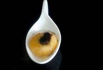 Nuestro Chef es el gran Eneko Atxa. Me daban ataques, ¿qué puedo hacer yo con este hombre?. Leí un montón de recetas, me decidí por su Yema de huevo trufada y cocinada a la inversa, uffff, al final es medio difícil la de él y muy fácil mi versión. Probé primero con una salsa de tomate, le fuí cogiendo el gustillo y finalmente me pareció una receta exquisita utilizando la salsa de unos calamares en su tinta que estaba preparando, la receta la tienes aquí.