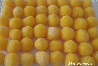 Preparación: En un cazo poner el agua, el azúcar y la glucosa y dejar que se haga un almíbar a punto de hebra.(10-12 minutos)* Retirar del fuego y dejar entibiar un poco. Batir las yemas, pero no mucho para que no hagan demasiada espuma y mezclar a hilo fino las dos preparaciones. Llevar de nuevo al fuego y con cuidado y sin dejar de remover esperar que la mezcla espese. Es fundamental hacerlo a fuego muy suave y sin dejar de remover para que no se agarre. Una vez hecha la masa de las yemas, verterla sobre una bandeja y dejar enfriar totalmente. Entonces formar unas bolitas y rebozar en azúcar granillo. Colocar en cápsulas o bandejitas solamente y servir.