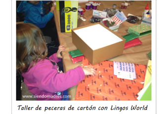 En un abrir y cerrar de ojos ya estábamos en la actividad organizada por Lingos World que nos encantó. Mi hija y yo hicimos una pecera preciosa con una caja de zapatos.