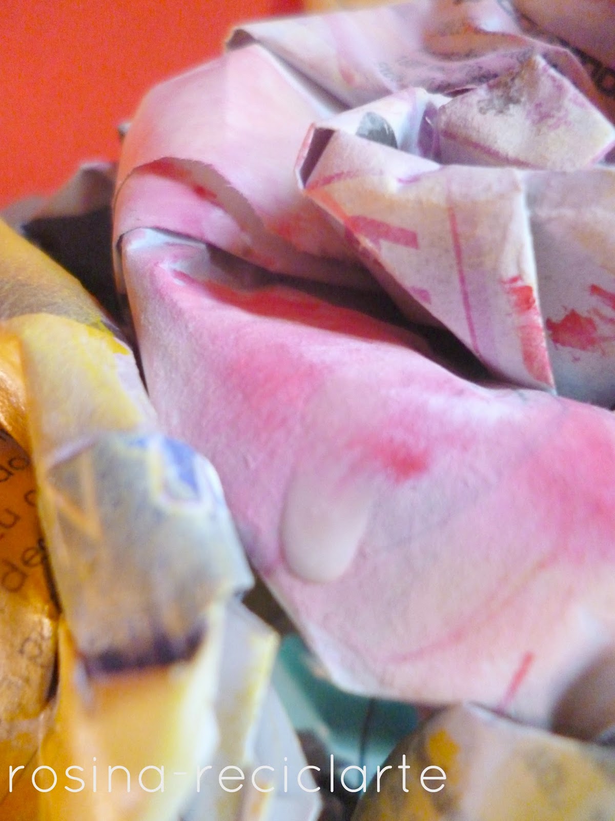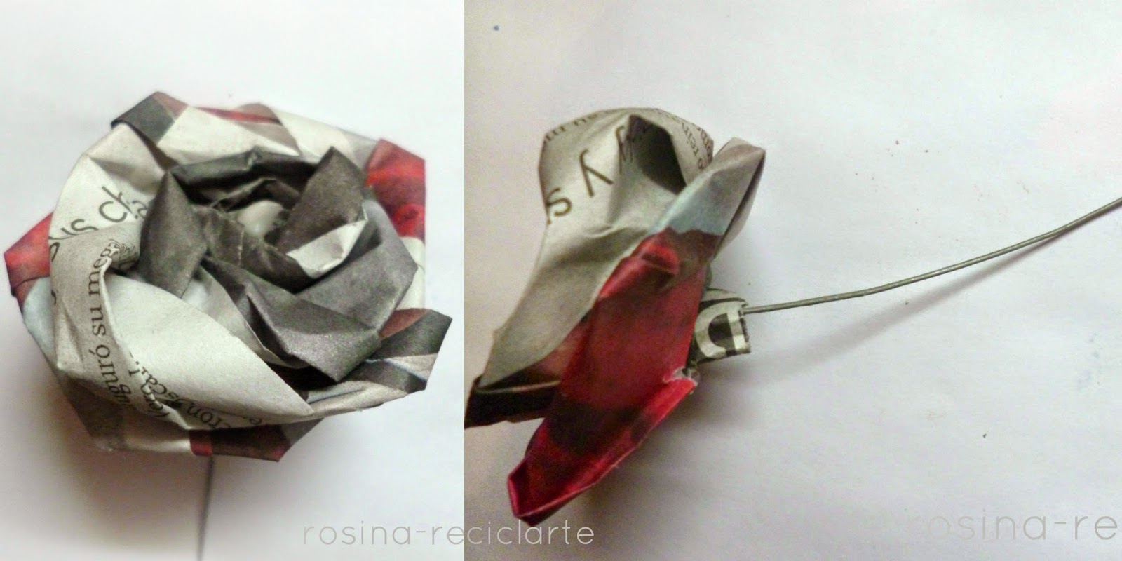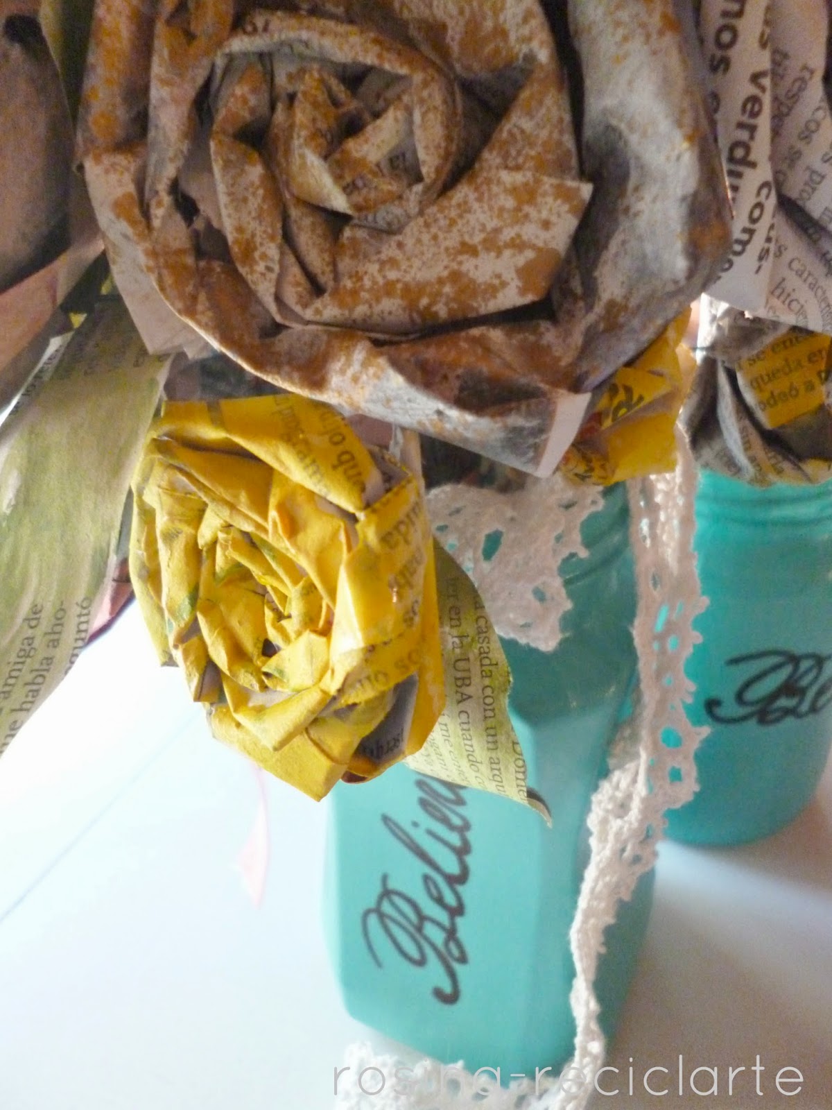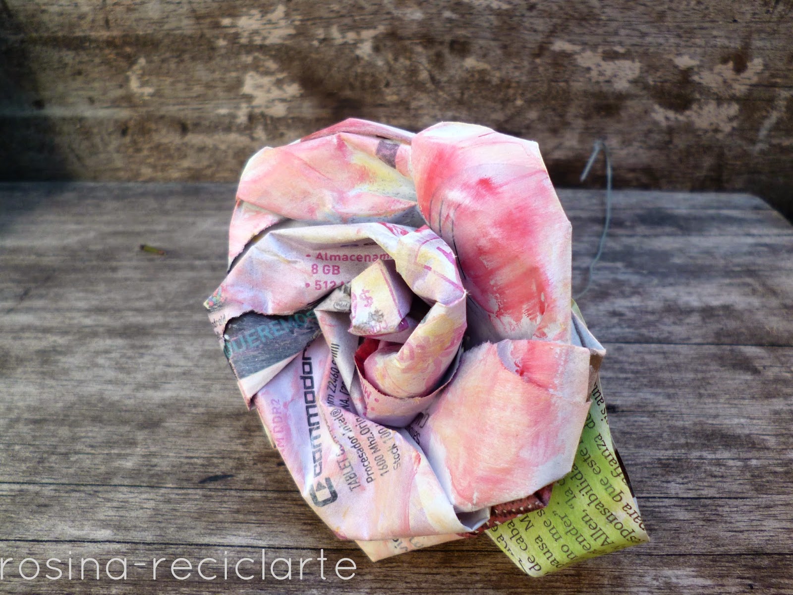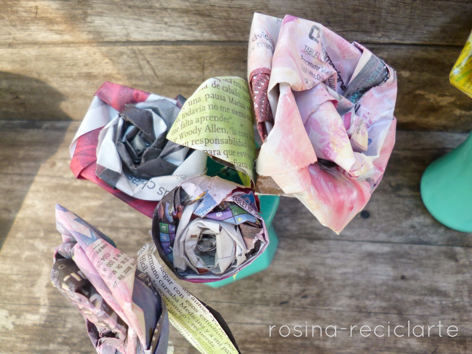 Y como ahora no hay mucha flor( por no decir ninguna)en mi jardín pues a falta de naturaleza, buenas son las flores de papel de diario, verdad?