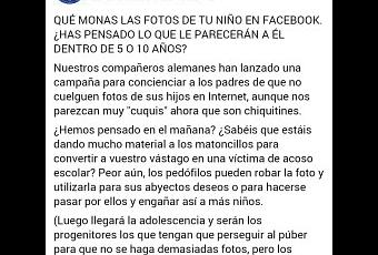 ¿Hemos pensado en el mañana? ¿Sabéis que estáis dando mucho material a los matoncillos para convertir a vuestro vástago en una víctima de acoso escolar? Peor aún, los pedófilos pueden robar la foto y utilizarla para sus abyectos deseos o para hacerse pasar por ellos y engañar así a más niños.