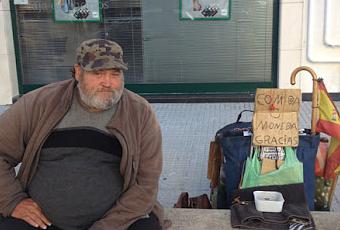No lo pude resistir, le pregunte si le gustaba el fútbol, por lo de la bandera. Que va, me dijo, la bandera es para señalar que yo soy español, que hay mucha gente por ahí que viven en la calle, y eso, que creo que tenemos derecho nosotros los españoles a pedir limosnas antes que los extranjeros.
