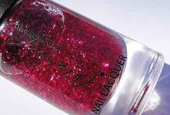 En verdad se llama 151 Sparkling fuchsia, pero necesito rebautizar este esmalte de Mabby Autino. FUEGO, MARAVILLOSO, BELLEZA. Es bello. Muy.Se trata de un esmalte con base transparente y con glitters pequeños y grandes. Sin base alguna y con 3 capas queda así, aunque uds. pueden agregarle menos y alguna base de su preferencia. Datos: con una base negra queda increíble (se parece a uno de Revlon, Scandalous, que nos cautivó a principios de año, pero este es más rosa y el otro, más violeta), con rojo se pierde un poco.