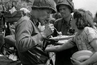 Nosotros les gritábamos “bravo, bravo” y ese tipo de cosas. Fue muy tierno yo tenía 16 o 17 años. Les pedimos un cigarrillo, y ellos estaban encantados y nos daban chocolatinas y esas cosas. Yo tuve que recoger muertos en plena calle y todo eso. También había cadáveres de soldados alemanes.Jeannette Ratel: