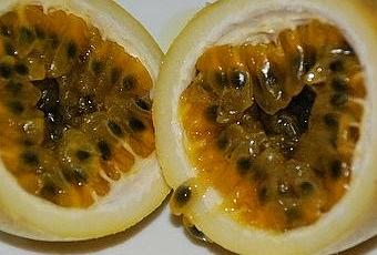 Seguimos con deliciosos postres lactéos, acompañado de frutas de la pasión, el Maracuya. Es una fruta originaria de Centroamérica y Suramérica. La pulpa, el zumo, las flores y la infusión de las hojas de maracuyá tienen un efecto relajante, pudiendo utilizarse como calmante. Esta fruta contiene unas pepitas de color negro que también son comestibles.