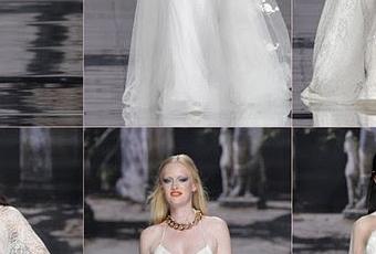 El desfile de Yolan Cris que pudimos ver en Barcelona Bridal week fue espectacular.Un resumen en esencia y espíritu de la colección más estudiada y cuidada que las hermanas Cristina y Yolanda Pérez han realizado hasta ahora.El desfile se dividió en dos partes. Presentaron cuatro líneas, dos por cada estilo. Sobre una pasarela de espejo, la primera parte nos mostró la esencia de la marca con diseños de estilo boho-chic, la segunda parte en cambio presentó su línea más exclusiva de alta moda en novia.Durante esa primera parte del desfile pudimos ver un look muy hippy, encajes, flecos, túnicas, y algún diseño que recordaba los años 60. Diseño desdenfadados y muy bohemios. Guipur, crochet, lino, túnicas, blusas con manga murciélago complementadas con faldas de gasa de seda asimétricas. En definitiva estilo de aire romántico. De repente salieron del inicio de la pasarela dos modelos que recordaban a dos ninfas, seguidamente empezó el ritmo y el diseño en estado puro inundó la pasarela. En esta segunda parte pudimos ver diseños de alta costura con bordados a mano, los mejores tejidos de Europa y pedrería bordada a mano. Guipures de seda en tonos pastel, tules bordados de seda y encajes de chantilly francés.Una vez más espaldas bajas y siluetas de corte sirena. Arte en estado puro! Una auténtica maravilla.Disfruté mucho de este desfile, para mi uno de los mejores que he vivido durante estos días! Me encantó la música que escogieron! Os recomiendo que veáis en video, sobretodo a partir del minuto 9!