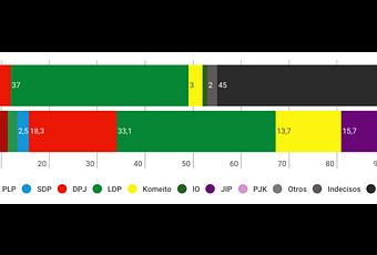 Los partidos de la oposición quedarían laminados: el social liberal Partido Democrático, el Partido Comunista y el budista Komeito apenas sumarían la mitad de los votos que obtendría el LPD.