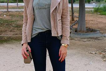 Ya tengo bastantes prendas de esta marca en mi armario, asi que poco a poco os las iré enseñando por aquí.Los jeans los combiné con camiseta con mensaje, chaqueta de serraje en beige y cuñas en el mismo tono. Creo que este va a ser el último look con calzado de verano...