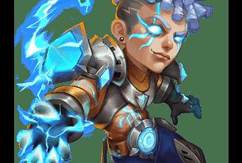 Young Spark también puede desempeñar un rol clave en defensa gracias a su capacidad de infligir daño en ráfaga y su velocidad de ataque. Colócalo en posiciones donde pueda proteger a los héroes de apoyo y mantener la presión sobre el equipo atacante. Su Escudo Eléctrico le permite resistir el daño entrante mientras sigue siendo una amenaza constante para los atacantes.