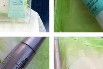Compre esta bolsita de plástico con asitas por 2’80€ que contiene: las toallitas desmaquillantes de rostro pure calmille, que a mi me van genial porque mi piel es sensible y me desmaquillan sin agredir nada la piel,una mascara de pestañas ultra volumen en color negro y una mini talla de un gel crema hidratante intensivo que para estos dias de verano va genial!!