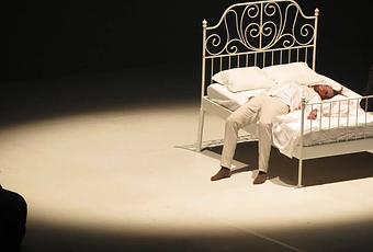 A medida que avanza la obra, se van introduciendo algunos elementos de atrezzo, como un manzano suspendido, una cama, o un paisaje de sillas. La soberbia dirección escénica es obra de Thierry Bruehl, que da en el clavo al complementar la hipnótica e intensa música de Glass, que se tornaba increíblemente tétrica y siniestra en los momentos más álgidos del relato.