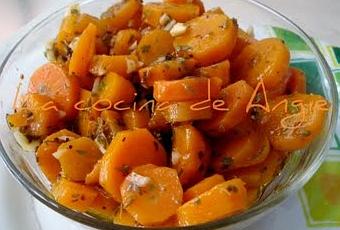 - Pelar y lavar ½ kg. de zanahorias y poner a cocer en un cazo con agua y una chispa de sal, hasta que estén tiernas pero que no se deshagan (unos 20´). Escurrir y dejar enfriar.