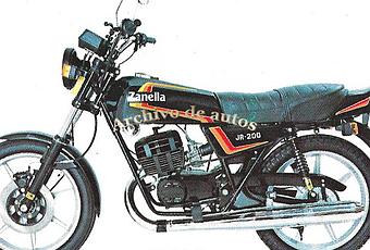 La constante evolución de las motocicletas Zanellallevó a la aparición de dos modelos: RB 200 y JR 200. Ambas con el mismo motor monocilíndrico, de dos tiempos, de 198,4 centímetros cúbicos de cilindrada. Incluso con la misma potencia de 21 HP. Pero con diferencias en frenos, suspensión y llantas. Esta ficha técnica corresponde a la Zanella JR 200, la más equipada de los dos modelos mencionados. Tenía llantas de aleación de aluminio con freno a disco en la rueda delantera. El recorrido de la suspensión delantera era de 140 milímetros y la suspensión trasera se podía regular en 5 posiciones. El cuadro, o bastidor, era de doble cuna. El arranque era por palanca y el encendido era mediante un volante magnético electrónico, de la marca Motoplat de 12 volts y 130 watts. El carburador era de la marca Mikuni modelo VM 28-225, pero también podía venir con un carburador de la marca Dell’ Orto modelo PHBH 28 BS. El embrague era de discos múltiples en baño de aceite. El tanque de combustible era de chapa estampada con una capacidad de 14 litros. El consumo de combustible era de 3,9 litros cada 100 kilómetros. Los neumáticos eran de la marca Imperial Cord.